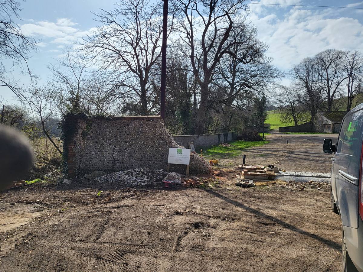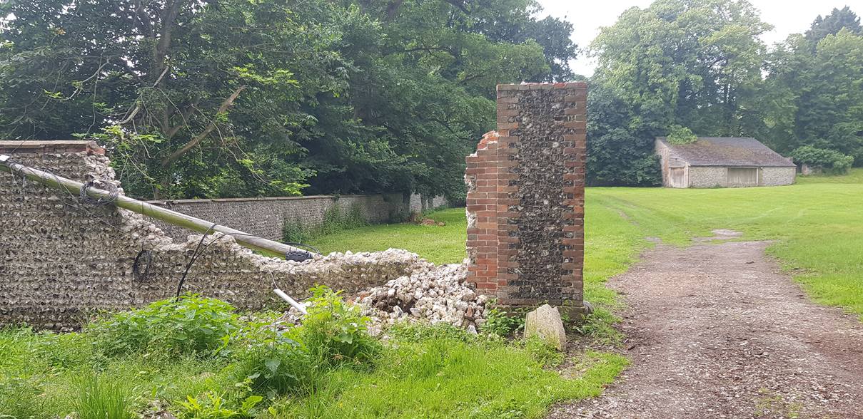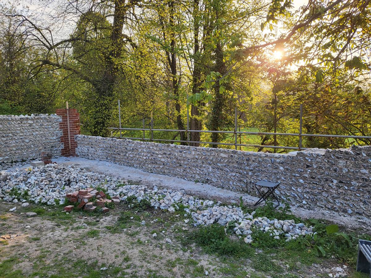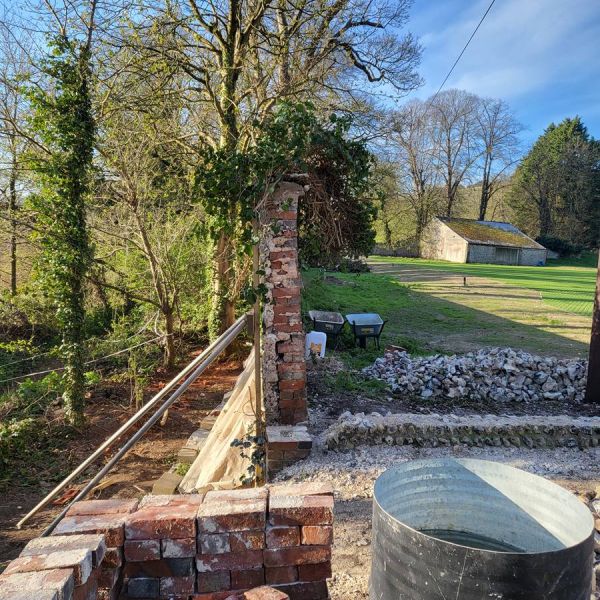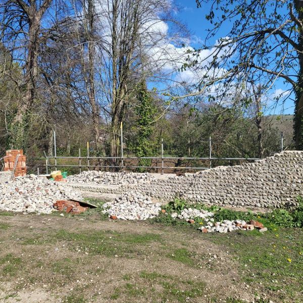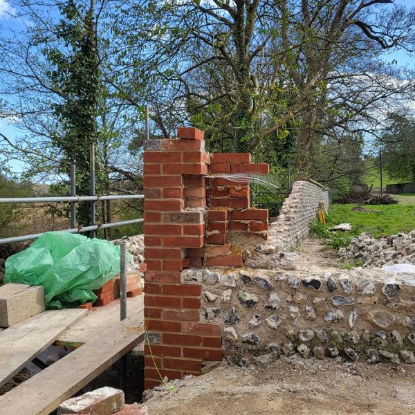 Dismantling of remaining wall due to collapse and re-build using lime mortar.