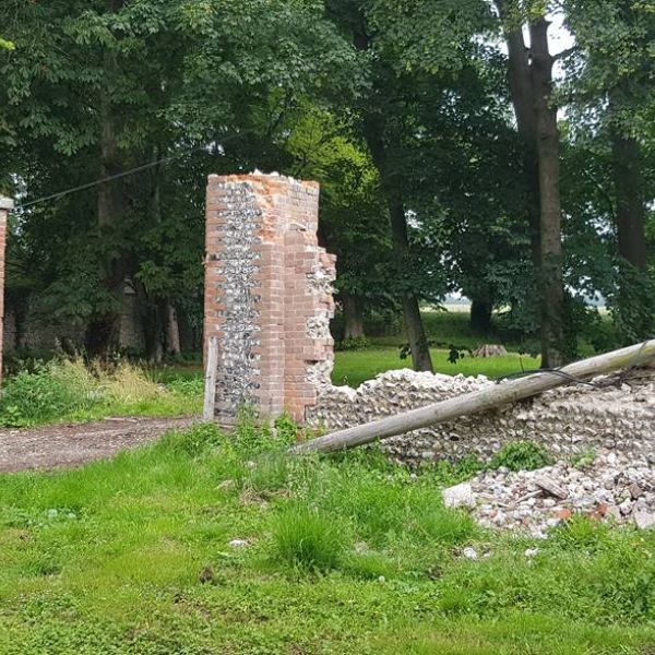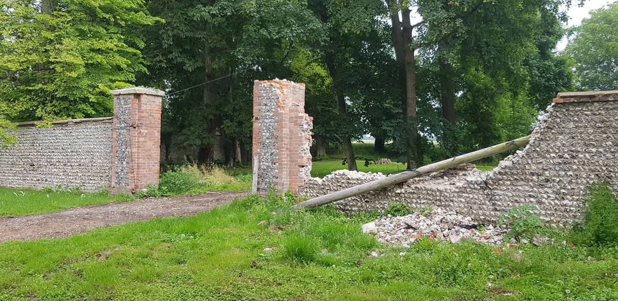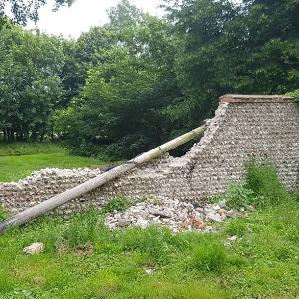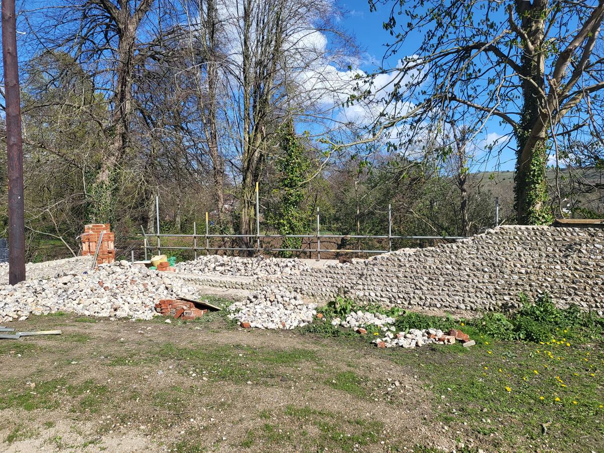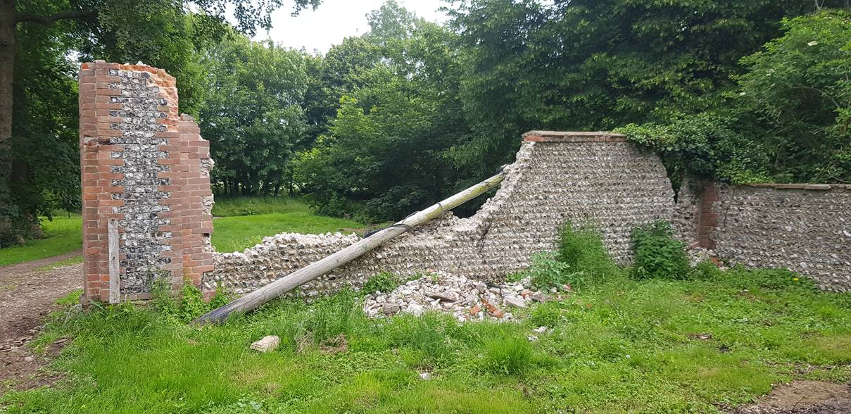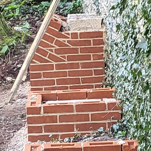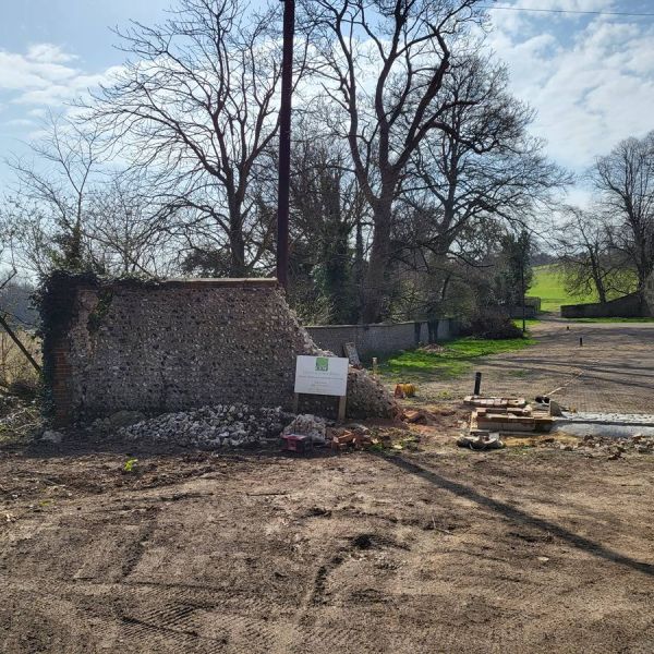 Dismantling of remaining wall due to collapse and re-build using lime mortar.